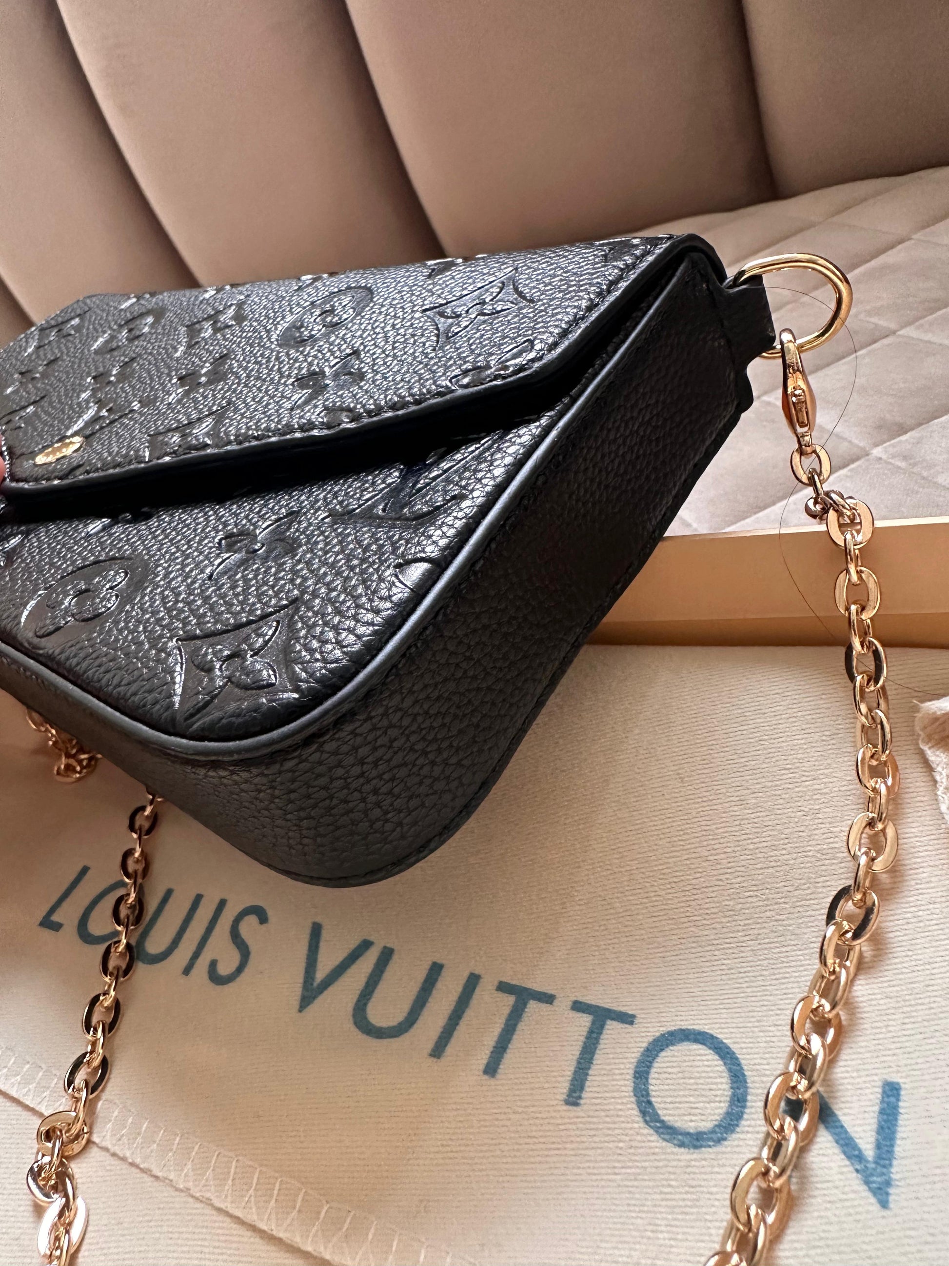 Bolso LV negro logo dorado Pochette Félicie