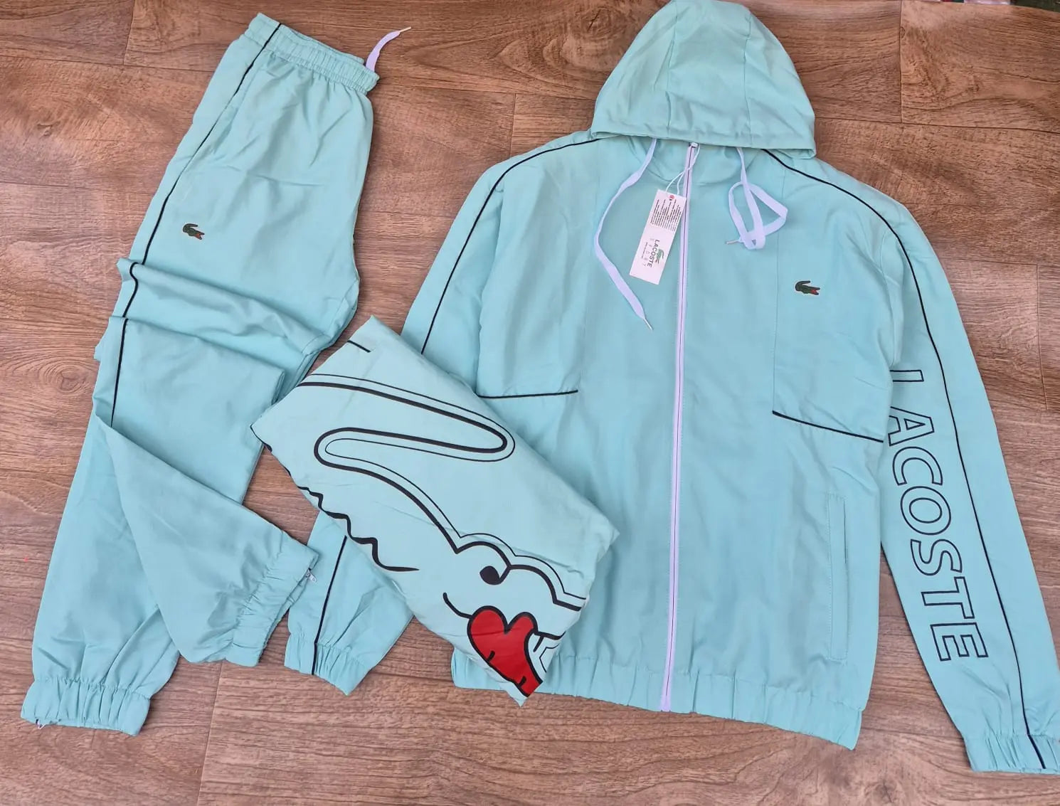 Chandal lacoste azul claro logo verde logo grande en espalda