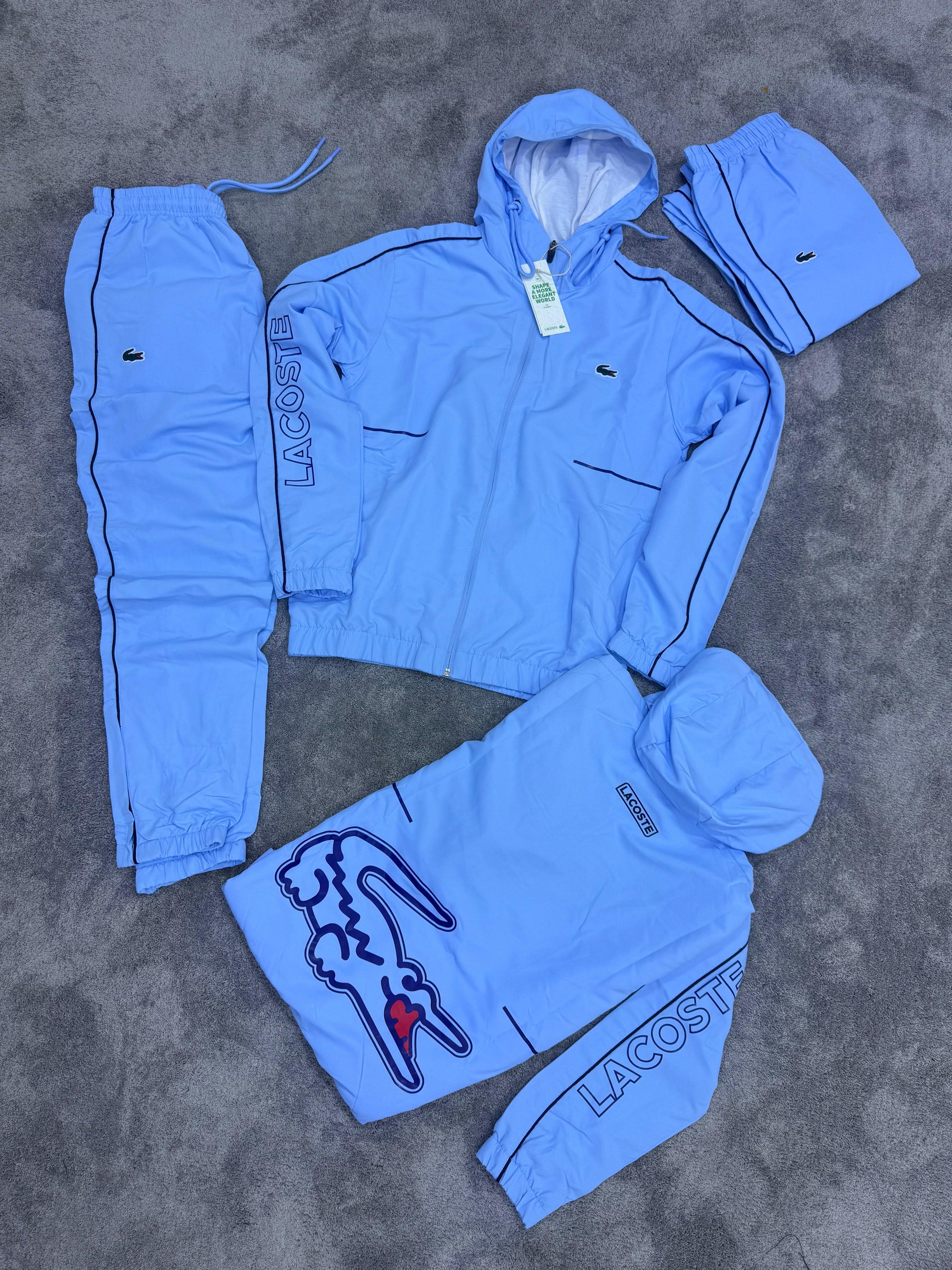 Chandal LACOSTE azul logo verde logo grande en espalda