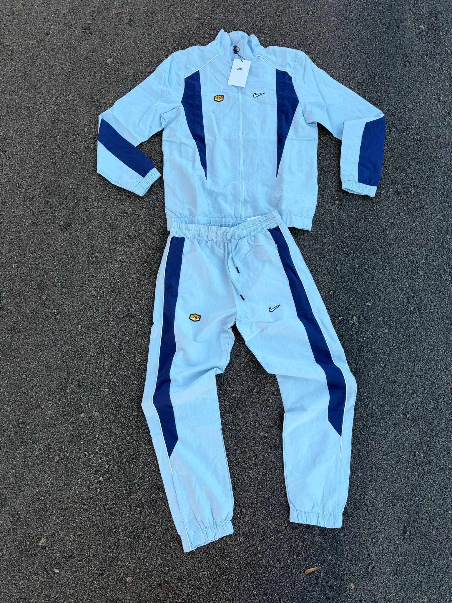Chandal nike blanco y azul logo blanco contorno negro