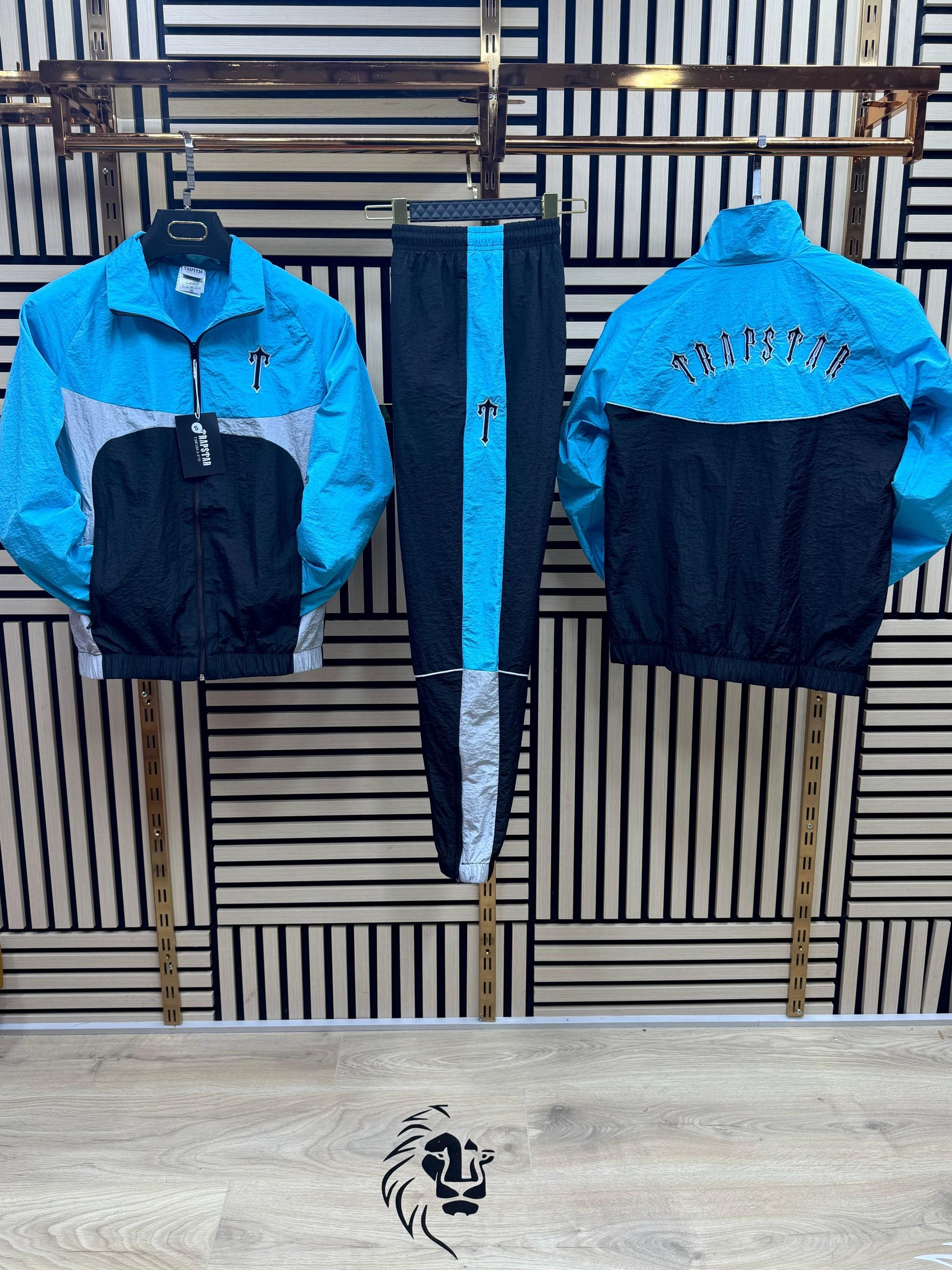 Chandal trapstar azul logo negro contorno blanco