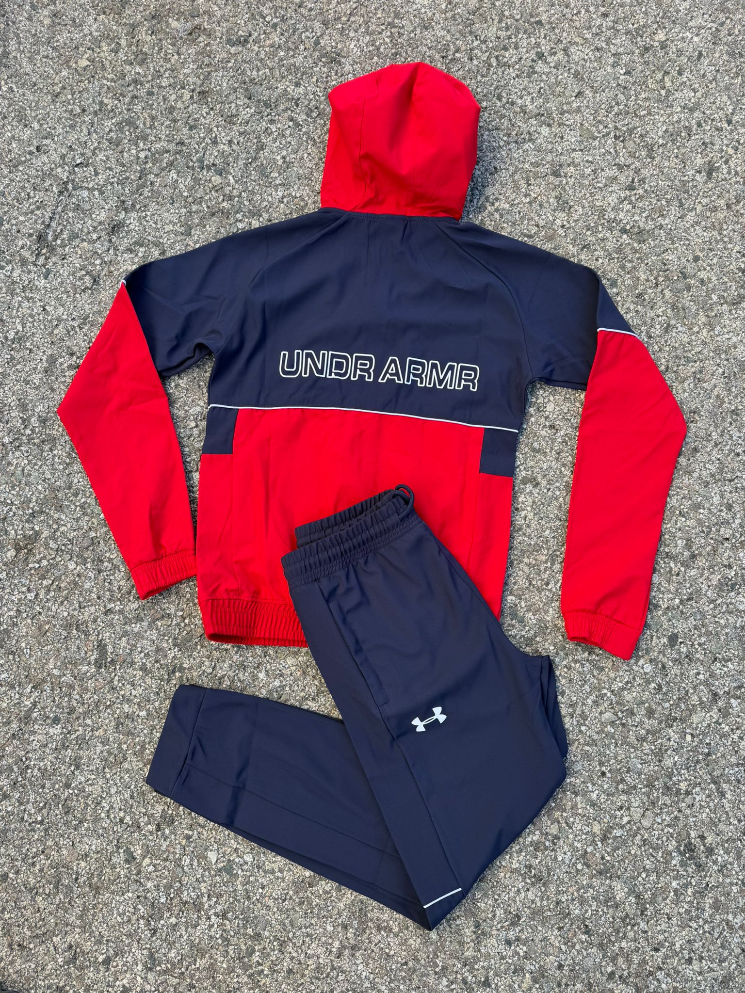 Chandal Under Armour rojo y azul logo blanco
