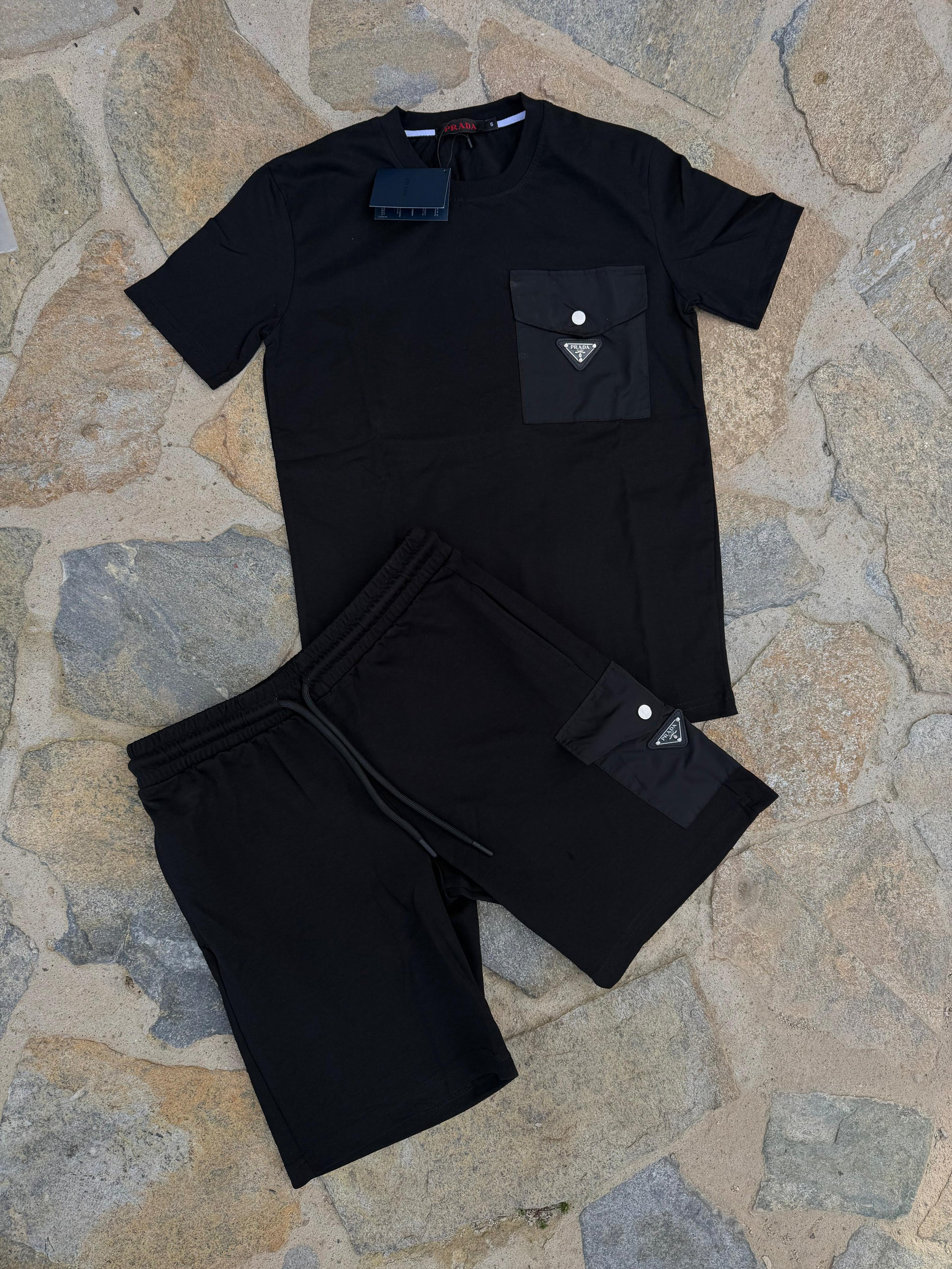 Conjunto corto prada negro bolsillo