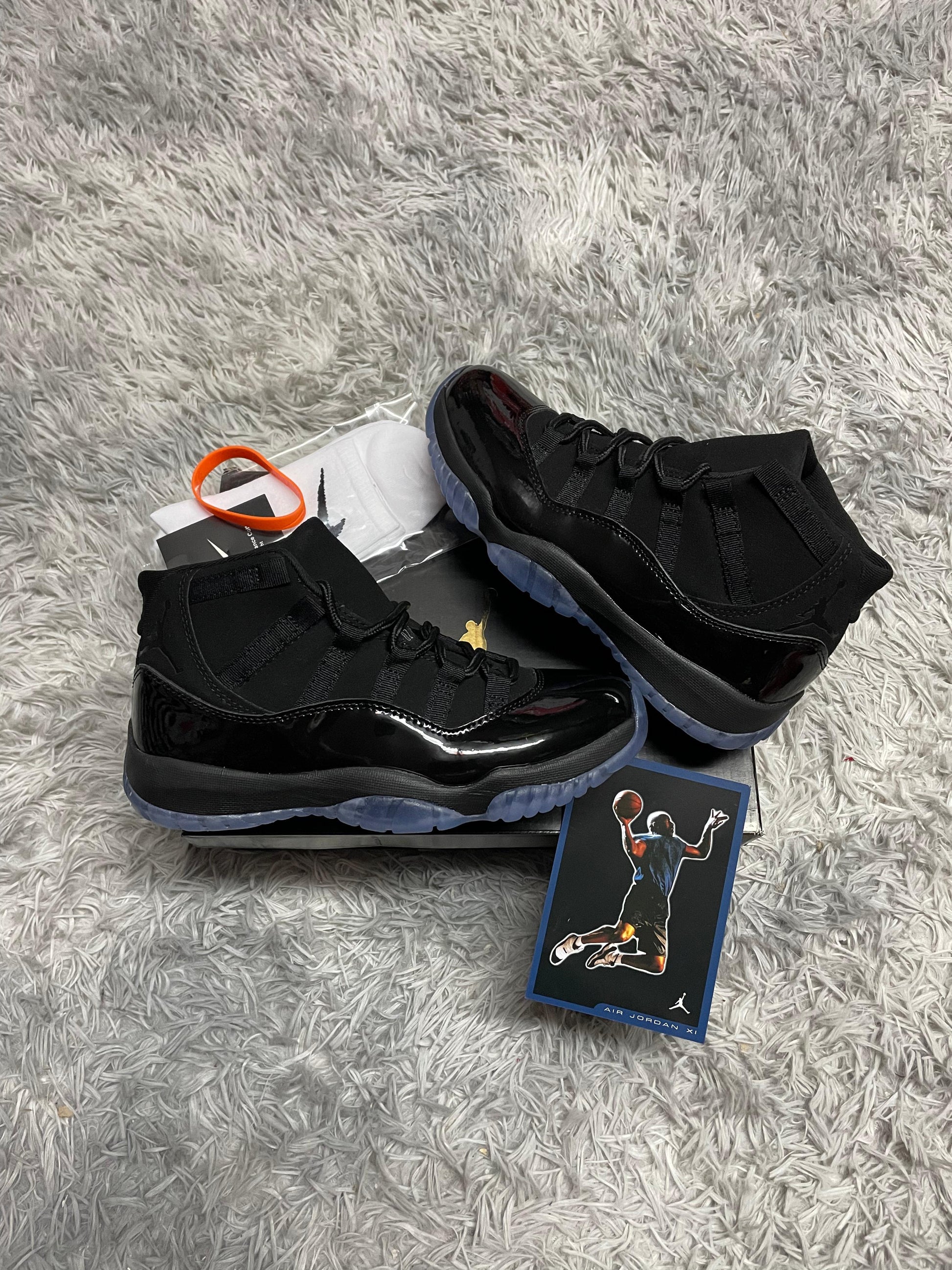 JORDAN 11 negras suela azul