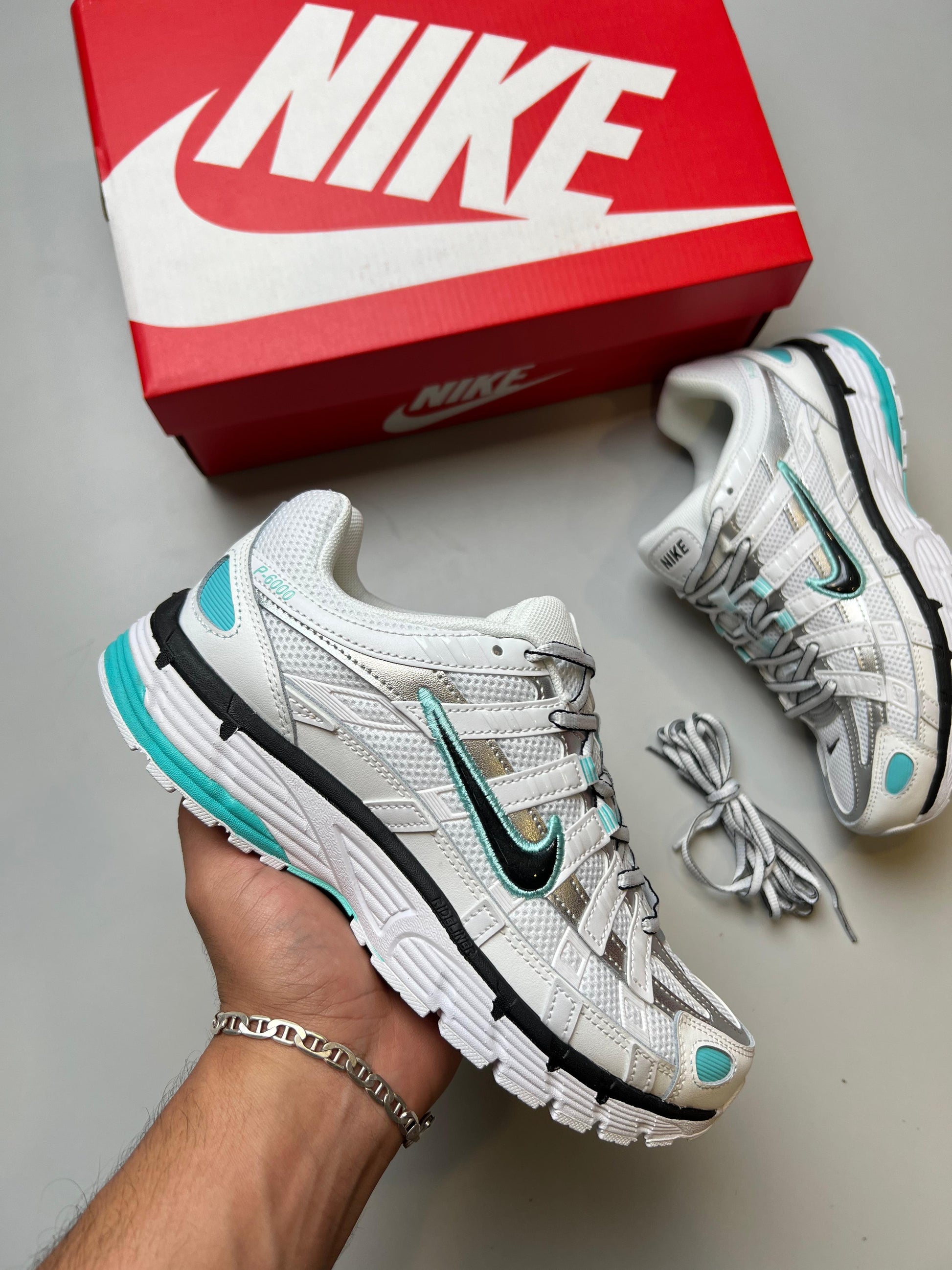 Nike P-6000 Blancas logo negro detalles azules
